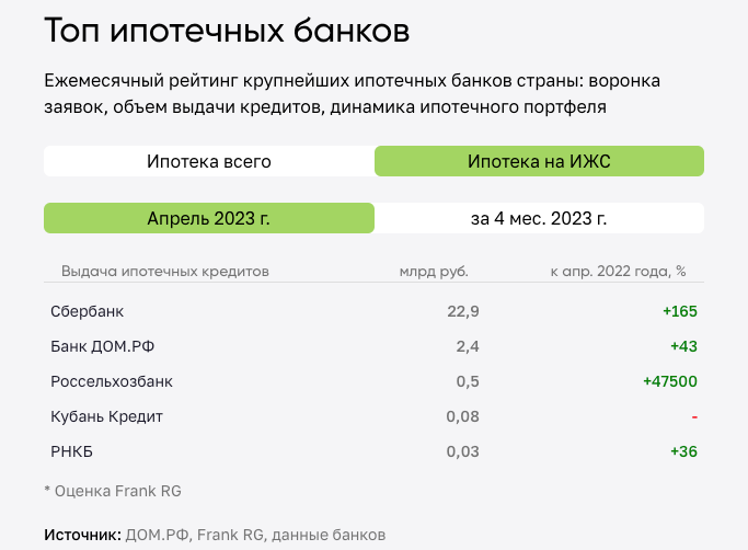 В результате общая доля сегмента ИЖС и готовых домов выросла до 14% от всех выданных ипотечных кредитов.