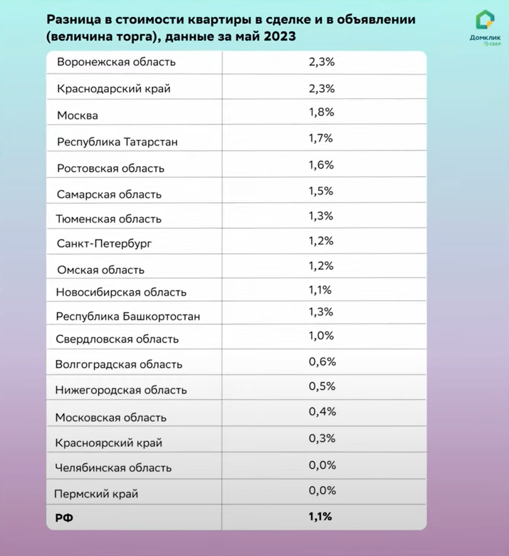 Специалисты сервиса “Домклик” от Сбербанка проанализировали продажи на рынке вторичной недвижимости в мае 2023 года и оценили скидки на неё.